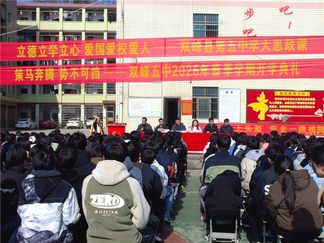 此次开学典礼既是一次凝心聚力的动员,更是一堂浸润心灵的成长教育课。双峰五中全体师生将以“立德立学立心,爱国爱校爱人”为指引,师生同心、家校同行,以脚踏实地的行动、勇毅前行的姿态,奋力书写学校高质量发展新篇章,让每一位学子在这片沃土上茁壮成长、逐梦远航。